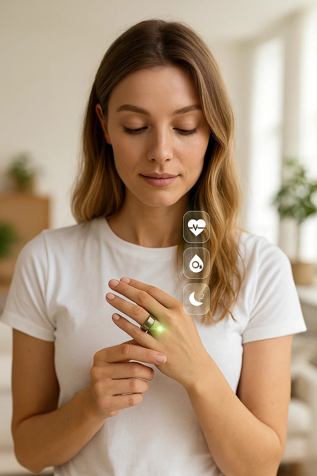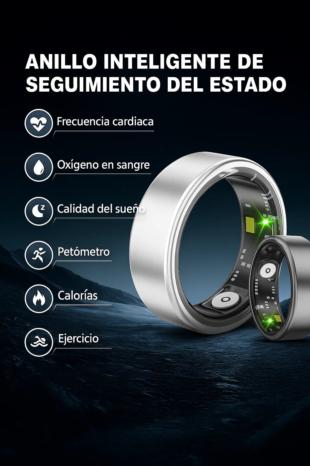 El anillo inteligente combina diseño elegante con tecnología de alto rendimiento. Fabricado en acero inoxidable o titanio, es ultraligero, resistente al agua (IP68) y cómodo para uso diario.