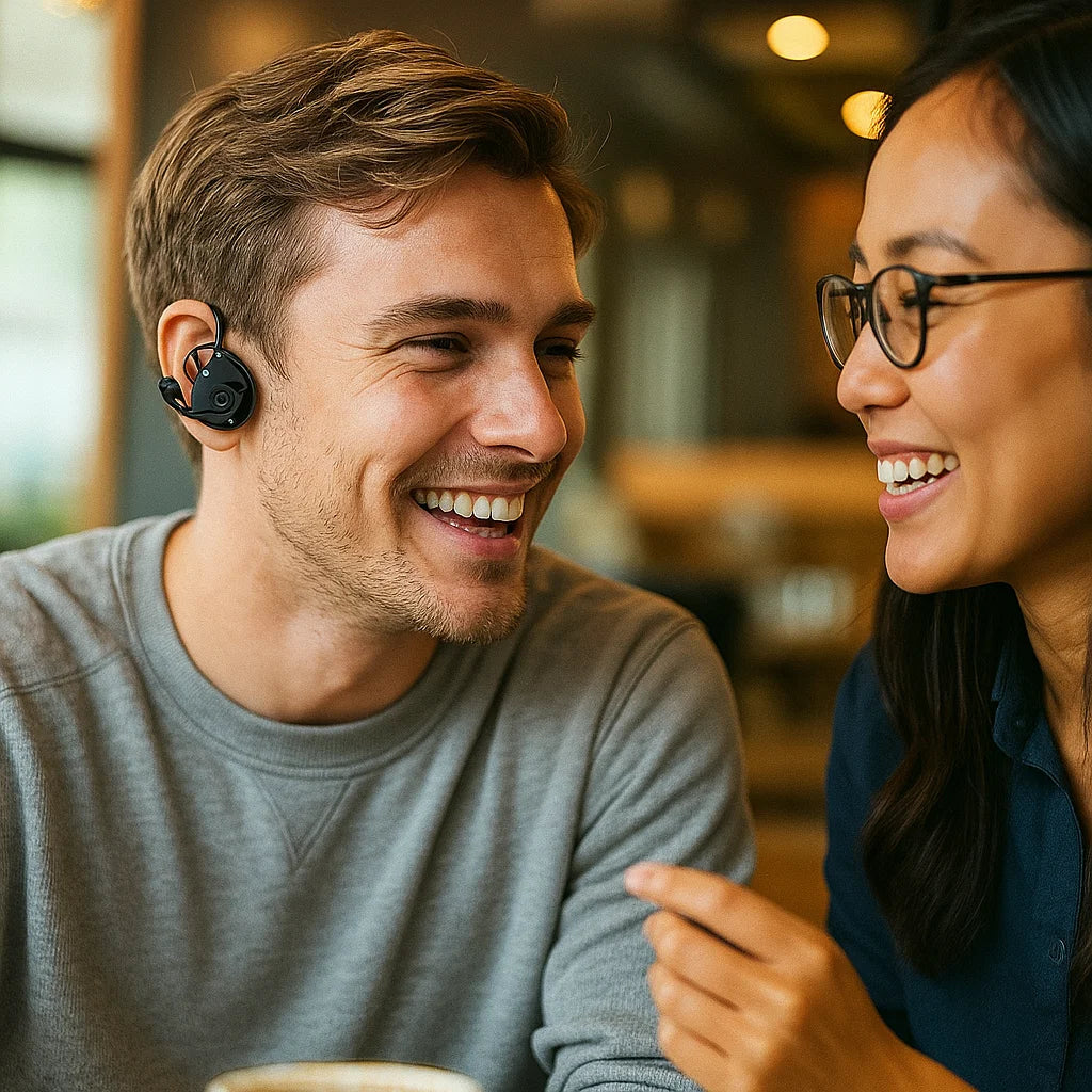 A diferencia de las apps o traductores humanos, nuestros auriculares te permiten comunicarte al instante, sin manos, sin interrupciones y con total privacidad.