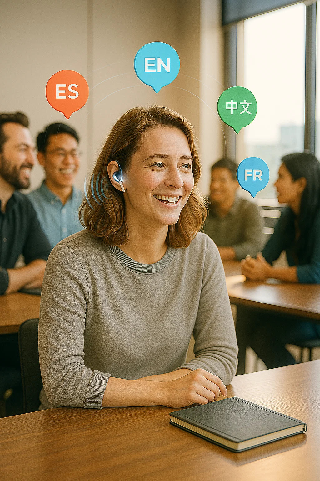 Con nuestros auriculares de traducción en tiempo real, todo eso cambia. Escuchas la traducción directamente en tu idioma, al instante, sin interrupciones ni distracciones. Puedes seguir el ritmo, entender cada detalle y participar con confianza, sin miedo a quedarte atrás.